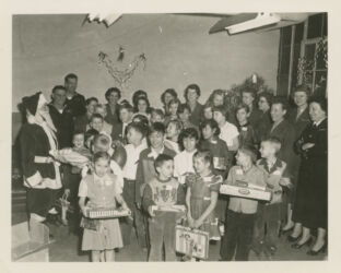 The Christmas Gift Fund is fulfilled once again via the Fall Sale and efforts of officers, committees and donations. The Uhlich children receive holiday gifts presented by the President of the Uhlich Woman’s Aid Society. (December 10)